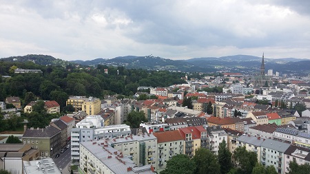 "Das Um und Auf ist die Zielsetzung!" Blick aus dem 15. Stock des Wissenstums in Linz; dem Höhenflug der Gedanken der TeilnehmerInnen am Social-Media-Tag war keine Grenzen gesetzt. (c) Ordensgemeinschaften Österreich