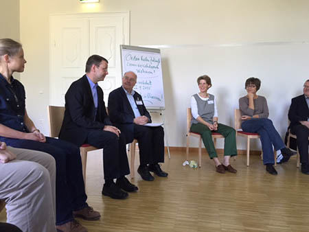 Prohaska sieht heute eine Überforderung in der Kleinfamilie, auf die alles zurückfällt. „Wir leben ein Netz von Haushalten und sozialer Verwandtschaft. Selbstorganisation und soziale Verwandtschaft sind ein ständiger Prozess.“ Raum und Grund zu finden sind heute eine besondere Herausforderung. Das Projekt in Aspern ist interreligiös und hat einen „spirituellen Raum“, der von allen genützt wird. Weiters wurde das Generationenwohnen der ÖJAB vorgestellt. Vorgestellt wurde auch das Wohnprojekt „Kana“ der Barmherzigen Schwestern in Wien. Der ehemalige Wohntrakt der Novizinnen wird zehn Frauen aus unterschiedlichen Herkunftsländern und Religionen angeboten. „Damit kommen neue Sichtweisen und Lebenserfahrungen ins Haus.“ Ebenso vorgestellt wurde das Wohnprojekt für 140 Flüchtlinge der Steyler Missionare in Maria Enzersdorf. Zur Sprache kam auch das Wohnprojekt im Mutterhaus der Schulschwestern in Wien Erdberg, wo zuerst Studentinnen angeklopft haben und jetzt Platz für etwa 15 junge Frauen und Männer geschaffen wurde. Sr. Herlinde Eberhard von den Schulschwestern bestätigt, „dass die unmittelbare Nähe zu den neuen solidarischen Wohnformen eine Inspiration für Ordensgemeinschaften sind.“