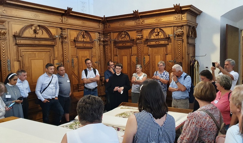 Frater Raphael Philip mit den Teilnehmenden der Veranstaltung in der Sommersakristei des Stiftes Kremsmünster (c) ÖOK