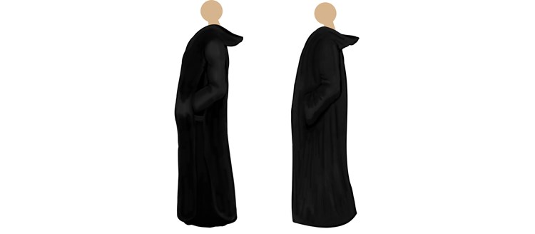 Der Habit der Benediktiner: Links nur der Habit samt Skapulier, rechts mit dem Überwurf, der Kukulle heißt und sehr weite Ärmel hat. (c) katholisch.de/Caroline Wegener/@CarOLONIAcrossMedia