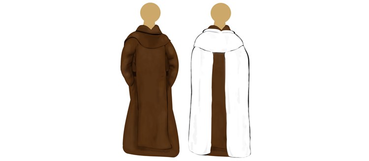 Die Franziskaner sind ein Bettelorden, den der heilige Franz von Assisi im Jahr 1209 gegründet hat. Vor rund 500 Jahren entwickelten sich zwei neue Ordenszweige; alle drei zusammen haben heute knapp 30.000 Mitglieder. Jeder der drei Zweige hat ein leicht unterschiedliches Ordensgewand: Der älteste Ordenszweig, die Minoriten (auch Franziskaner-Konventualen genannt), hat für die Brüder einen schlichten schwarzen Habit mit einem Schulterüberwurf samt Kapuze. Die heutigen Franziskaner sind ein Zusammenschluss mehrerer Reformbewegungen, die sich strenger an die Ordensregel hielten. Sie tragen ein braunes Gewand mit Kapuze und oft auch das sogenannte Tau-Kreuz um den Hals – denn braun war im Mittelalter die Farbe der Armen. Die von ihnen abgespalteten Kapuziner tragen kastanienbraune Gewänder mit einer langen, spitzen Kapuze, die direkt am Habit angenäht ist und den Kapuzinern zu ihrem Namen verhalf. Über ihre Ordenskleidung reden die Brüder ganz unbefangen: Zum Gewand sagen sie häufig "Kutte" und zum Zingulum, dem weißen Strick um die Hüften, schlicht "Kordel". Diese Kordel hat drei Knoten – sie stehen für die Gelübde der Armut, Keuschheit und des Gehorsams.