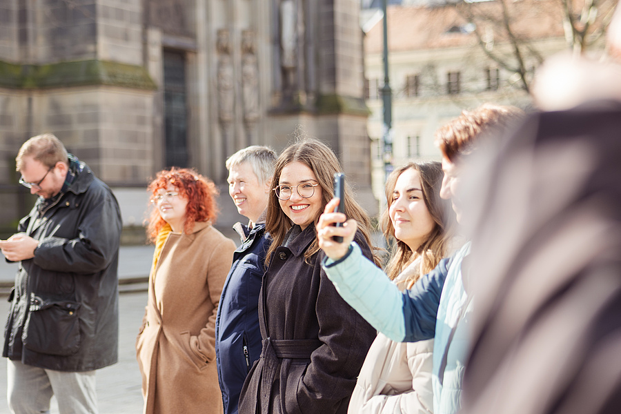 Am Nachmittag gestaltete die Gruppe im Linzer Mariendom ein Friedensgebet. Der Fokus war dabei auf den oberösterreichischen Seligen Franz Jägerstätter gerichtet, als Beispiel für Gewissensentscheidung und Standhaftigkeit. Anschließend bestand die Möglichkeit, den Dom aus unterschiedlichen Perspektiven zu erkunden.