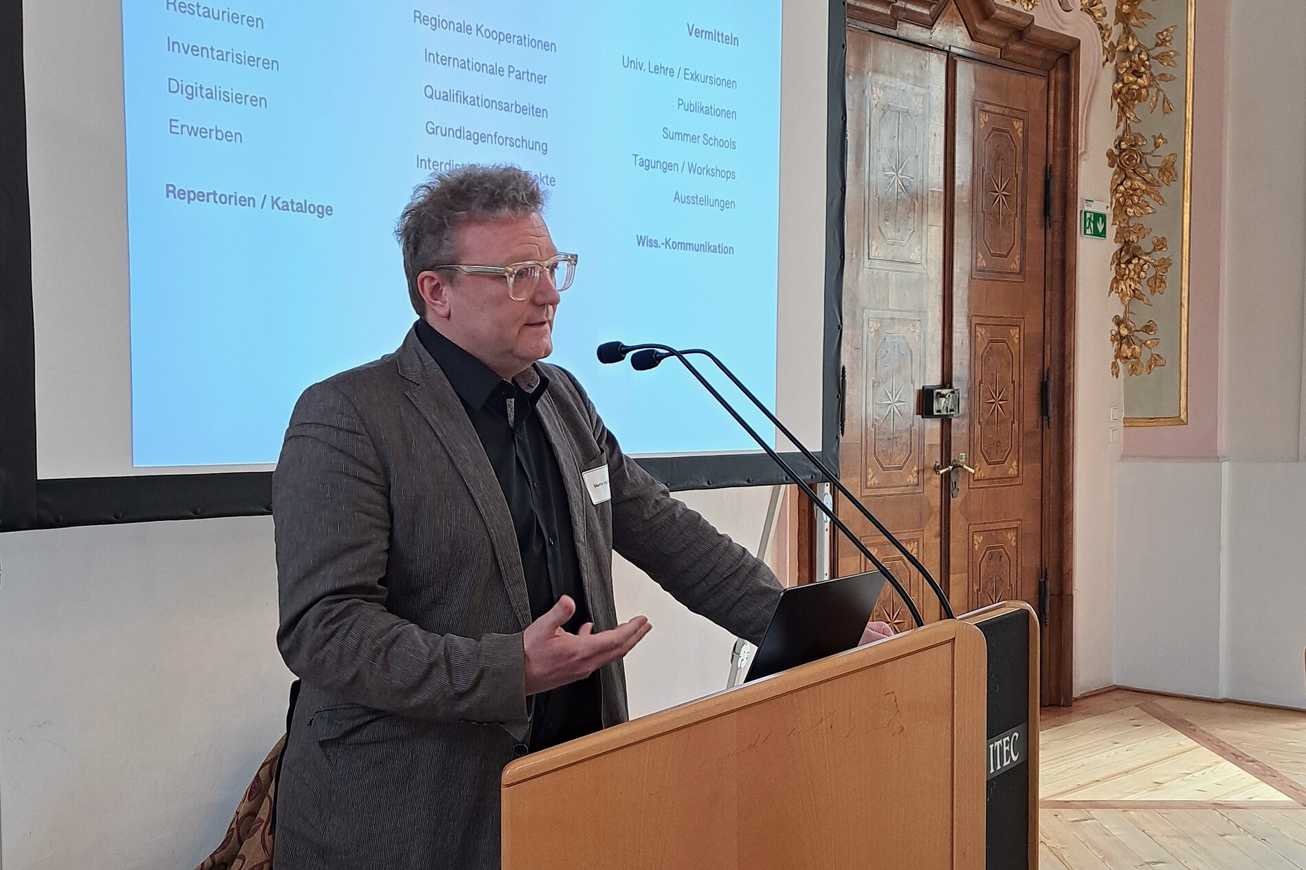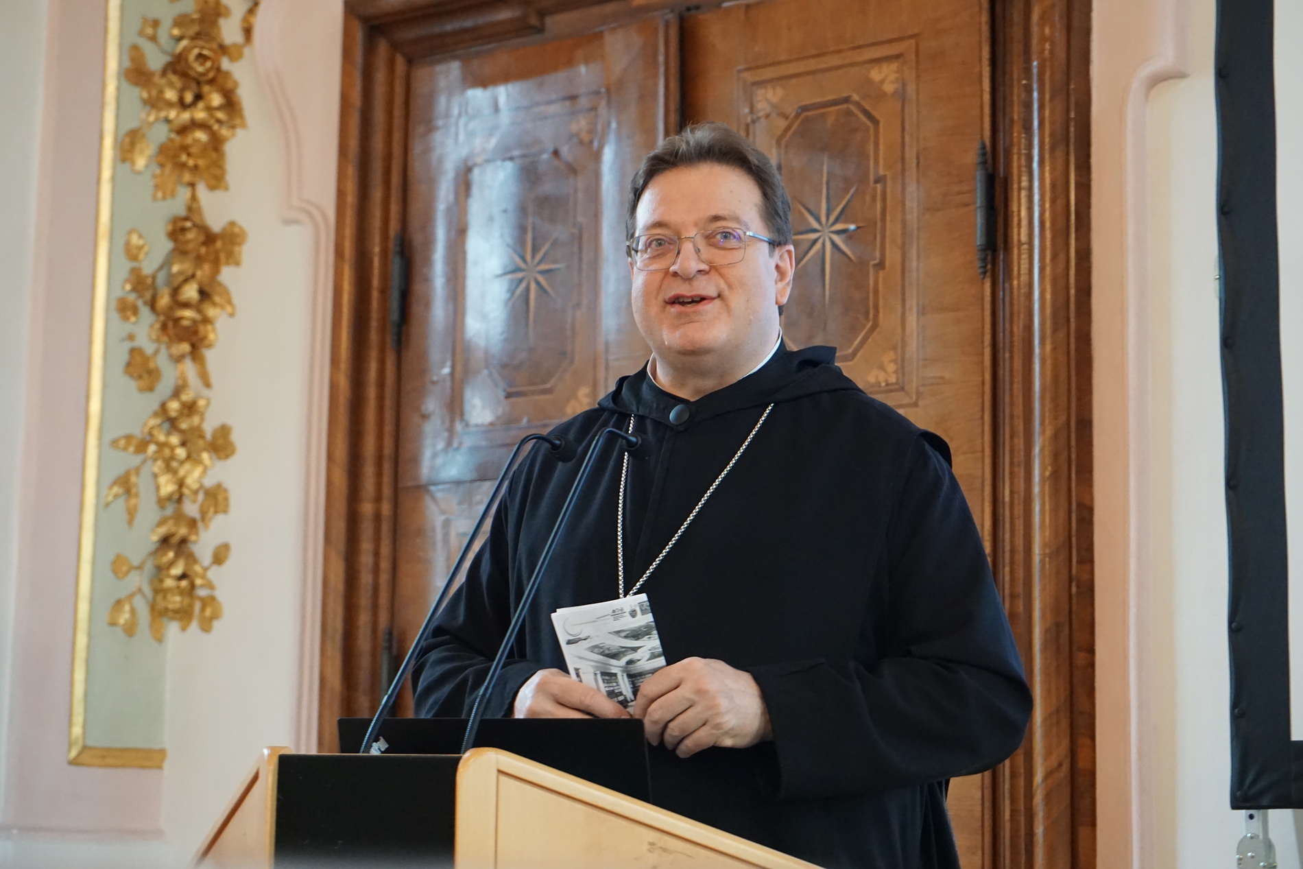Im daran anschließenden Vortrag stellte Martin Haltrich aus dem Stift Klosterneuburg die 2023 gegründete und von ihm geleitete Forschungsstelle für Kulturwissenschaftliche Studien vor. Mit dieser Initiative will das Stift monastische Kulturen stärker in den Fokus rücken und die internationale Forschung auf den Wert der klösterlichen Lebensweise, ihre lebendige Tradition und ihre kulturellen Zeugnisse aufmerksam machen. Der Brückenschlag zwischen Kloster und Forschung sei zwar mit viel Aufwand verbunden, dieser werde aber auch immer wieder belohnt, zog Martin Haltrich ein positives Resümee dieser Kooperation.