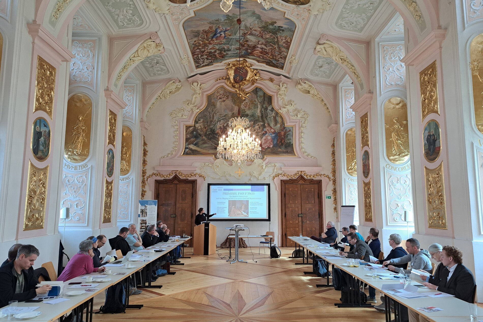 Zu Beginn des zweiten Veranstaltungstages stand zunächst eine Führung durch die historische Stiftsbibliothek durch Pater Jakob Stoiber, Bibliothekar und Prior des Stifts Lambach, auf dem Programm.