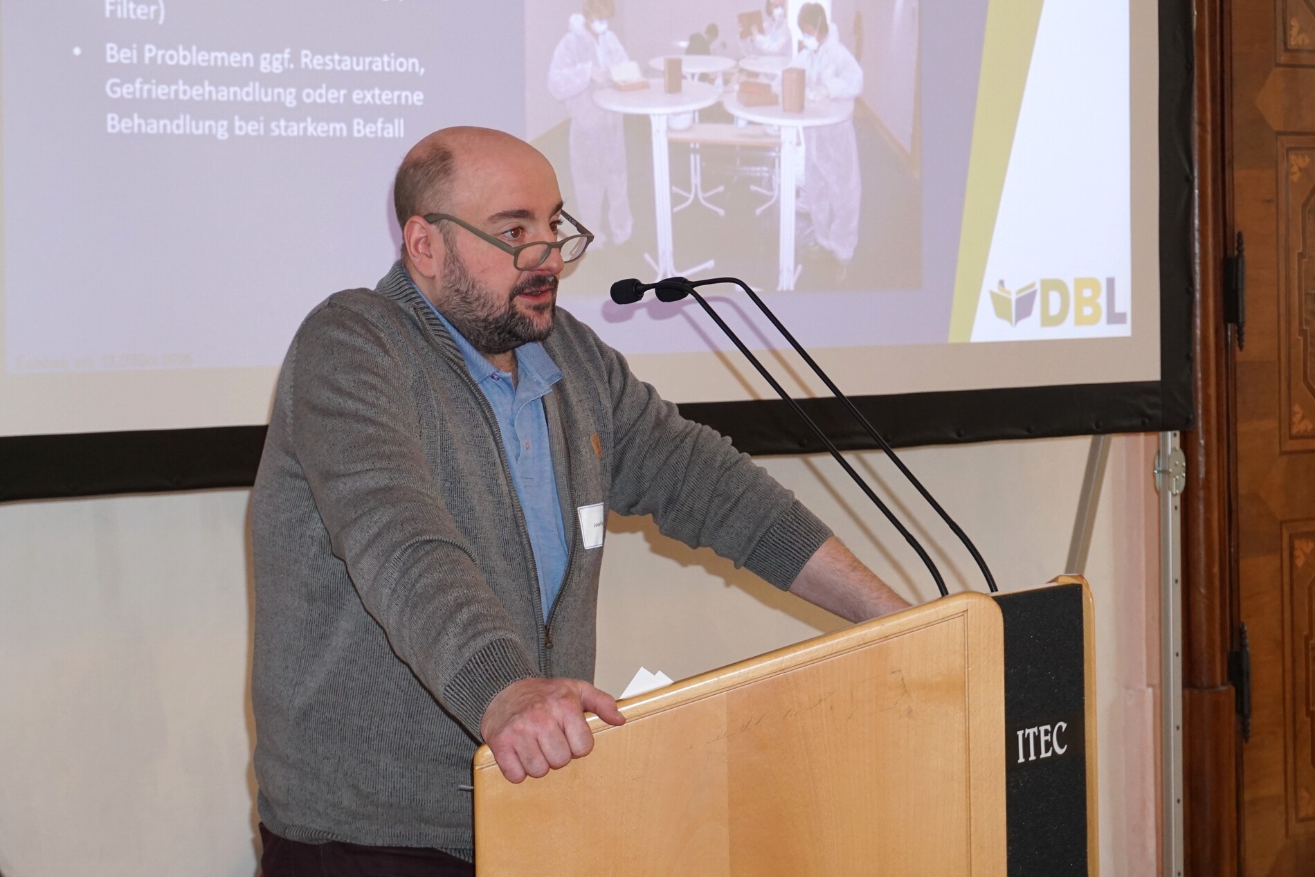 Auch die Frage nach dem Umgang mit Bibliotheken aufgelöster Klöster wurde intensiv beleuchtet. Josef Kern und Ingo Glückler von der Diözesanbibliothek Linz gaben in ihrem Vortrag einen praxisorientierten Einblick in den „Life Cycle“ einer Bibliotheksübernahme – von der ersten Kontaktaufnahme über Bewertung, vertragliche Grundlagen und Haftungsfragen bis hin zu Transport, konservatorischer Sicherung und Integration in bestehende Infrastrukturen. Anhand konkreter Projekte stellten sie unterschiedliche Modelle der Erschließung, Digitalisierung und kooperativen Nachnutzung vor, wobei die Bandbreite von hauseigenen Initiativen über drittmittelgeförderte Projekte bis zu Partnerschaften mit universitären Einrichtungen reichte.