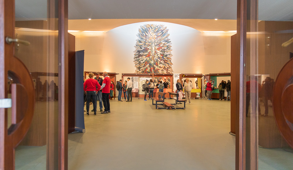 Der Kirchenraum wurde flexibel gestaltet: Viele Elemente sind mobil nutzbar, etwa durch Rollen an den Kirchenbänken oder den fahrbaren Marktständen. So kann der Raum je nach Bedarf für Gottesdienste, soziale und gemeinschaftsfördernde Angebote adaptiert werden.