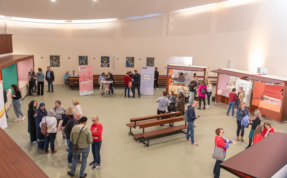 Beim Open-House-Event am Nachmittag präsentierten sich zahlreiche Initiativen im Kirchenraum, darunter Caritas Leo, Young Caritas, VHS, Polizei, Social Design der Angewandten und Gesprächsinsel. Ziel ist ein offenes Zentrum für Nachbarschaft und Gemeinwesen. Neben Sozialberatung und Essensausgabe sind auch Veranstaltungen sowie die Nutzung von Räumen für Feiern vorgesehen.