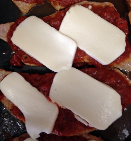 Schnitzel mit Salz und Pfeffer leicht würzen, in Öl scharf anbraten, auskühlen lassen. Im Bratenrückstand Zwiebeln anrösten, mit Mehl stauben und mitrösten, mit Weißwein und Suppensud aufgießen, Sauce auf kleiner Flamme reduzieren lassen, pürieren und abschmecken. Mozzarella in Scheiben schneiden, Pellati mit Kräutern, Salz, Pfeffer würzen, auf die ausgekühlten Schnitzel verteilen; mit den Mozzarellascheiben belegen. Bei 160° ca. 15 Minuten im Rohr überbacken.