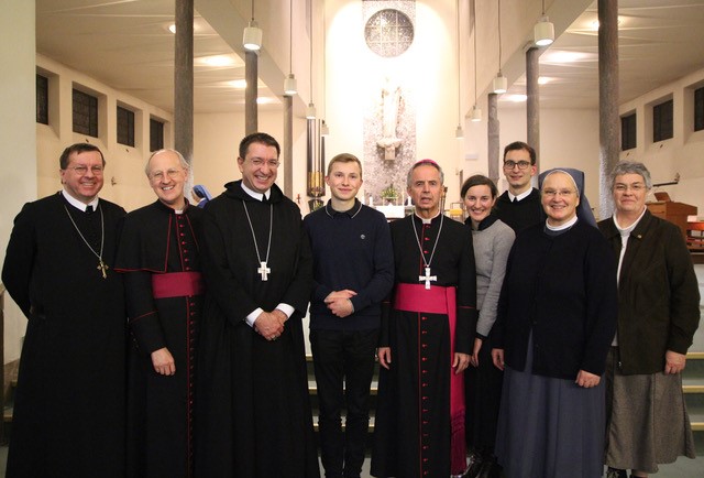 Die Gratulanten Erzabt Birnbacher und Weihbischof Hofer mit dem neuen und alten Leitungsteam. (c) privat