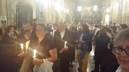 Dieses Licht der Welt wurde symbolisch in Form einer Lichterprozession als "Zeichen gegen Ignoranz und Ausgrenzung" aus dem Stephansdom hinausgetragen. Der Festgottesdienst fand ein stimmungsvolles Ende bei einem Abschlussgebet und einer Agape im Erzbischöflichen Palais.