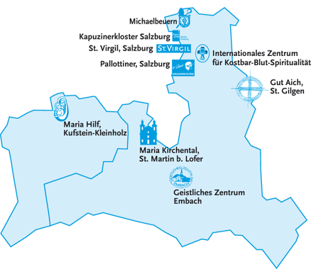 Heilsame Orte gibt es in Salzburg viele, darunter zahlreiche Ordenshäuser. Die Erzdiözese bietet auf der Seite "Heilsame Orte" einen guten Überblick und Zugang zu den verschiedenen heilsamen Orten, die Gäste empfangen.