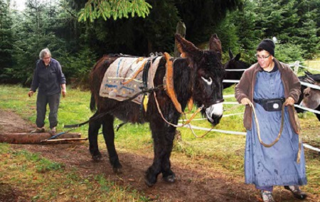 Schweigen heißt aber nicht Däumchen drehen, im Gegenteil: Der größte Teil des Tages wird genutzt, um sich den Lebensunterhalt zu verdienen. Sr. Rebekka ist eine meisterliche Gold- und Silberschmiedin. Mit geschickter Hand modelliert sie die Gleichnisse und die Botschaften Jesu in das Edelmetall. Ihre Kunstwerke sind mehr als nur dekorativer Schmuck; es sind funkelnde Glaubensbekenntnisse. Viele Hochzeitspaare bestellen bei ihr eigens für sie konzipierte Eheringe, doch die meisten fertigen Stücke verkauft die gelernte Restauratorin gemeinsam mit ihrer Mitschwester Damienne auf Klostermärkten in ganz Österreich – wenn das „Büsle“ mitspielt. Der Oldtimer hatte schon in der Vergangenheit des Öfteren seinen eigenen Willen durchgesetzt. Was ihn übrigens mit den Eseln vor der Haustür eint, die nicht nur für offensichtliche Idylle sorgen, sondern tatsächlich auch bei Holzschlagarbeiten ihren Beitrag zum Gemeinschaftsleben leisten.
