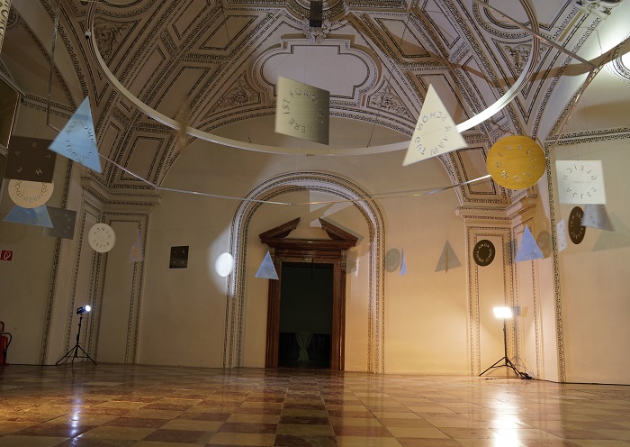 Fortgesetzt wird die Ausstellung mit "Spirit" in Raum drei mit 24 schmalen, lichtdurchlässigen und reflektierenden Objekten aus den geometrischen Grundformen Kreis, Dreieck und Quadrat. Die eingefrästen Begriffe oder Begriffspaare materialisieren dabei Geistiges und geben Wegweisung und Richtung. Weiter geht es im vierten Raum mit "Renaissance" und einem Kurzfilm, der der Frage nach der Essenz und dem bleibenden Wert von Kunst nachgeht. Im Innenhof der Residenz findet die Ausstellung mit "Smiling Damokles" ihr augenzwinkerndes Finale.