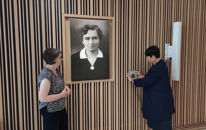 Sr. Susanne Krendelsberger, Generalleiterin der CS Schwesterngemeinschaft und Stiftungsvorstand der CS Caritas Socialis Privatstiftung, beim Anbringen der Reliquie Hildegard Burjans. (c) CS Caritas Socialis