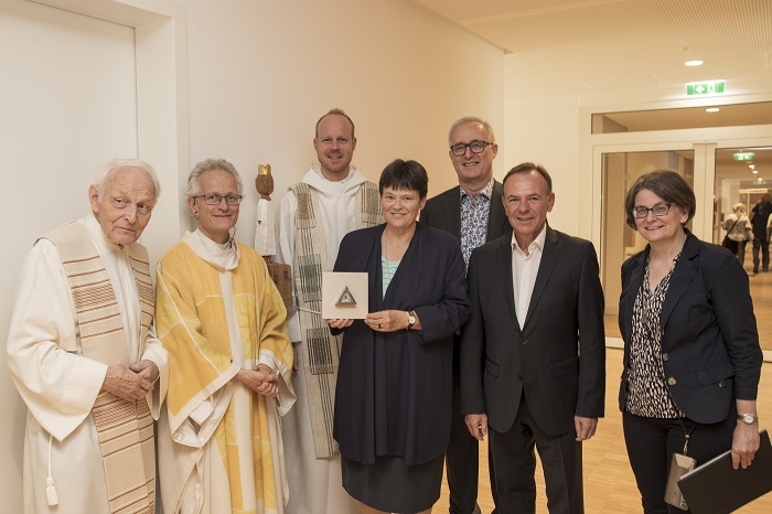 P. Michael Zacherl, Dechant Bernhard Pokorny, Korbinian Parzinger, Sr. Susanne Krendelsberger, Robert Oberndorfer, Bezirksvorsteher Gerald Bischof und Sr. Karin Weiler (v.l.) bei der Segnung der Kapelle in Kalksburg. (c) Genitheim