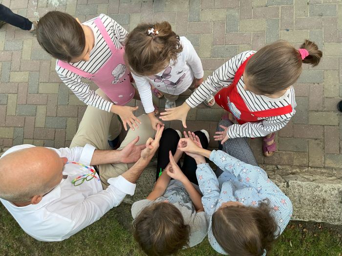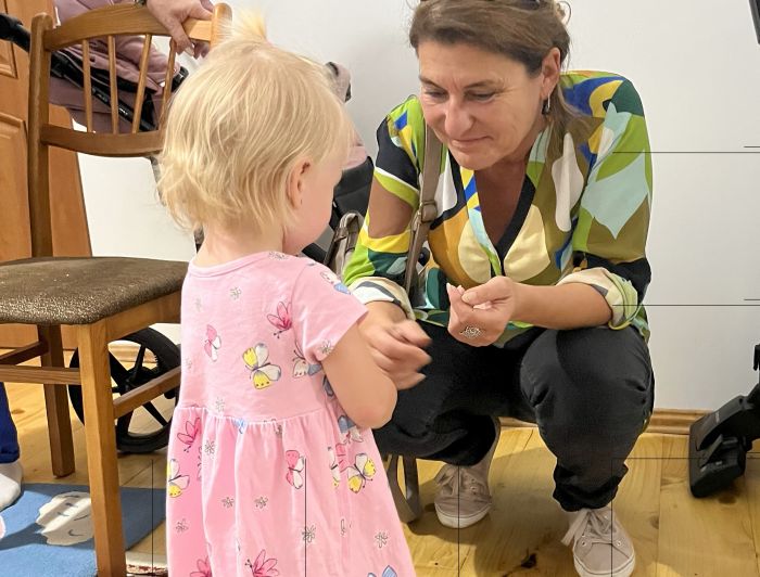 Gleich am ersten Tag unserer Reise besuchen wir zwei ukrainische Familien aus Odessa, die Platz in einem Concordia-Haus in der Hauptstadt gefunden haben. Die drei Frauen mit zwei Kindern wohnen im untersten Stockwerk eines mehrstöckigen Hauses. Die vierjährige Evghenia besucht bereits den Kindergarten, die einjährige Ana ist mitten im Krieg geboren. Sichtlich traumatisiert von den Erlebnissen erzählt uns die junge Mutter, dass sie beim Bombenalarm immer wieder in den Keller des Krankenhauses mussten. Die kleine Ana bekommt davon nichts mit und läuft aufgeweckt und auf der Suche nach Spielpartnern zwischen uns hin und her.