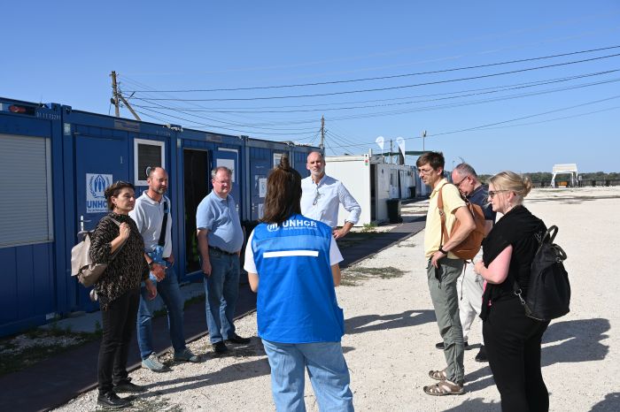 Am nächsten Tag fahren wir nach Tudora im Süden des Landes, an die Grenzstadt Palanca. Es ist eine der wichtigsten Fluchtrouten von der Ukraine nach Moldau und weiter in den Westen. Die umkämpfte Stadt Odessa ist nur rund 50 Kilometer entfernt. „Bei starkem Bombenbeschuss hört man die Bomben auch hier an der Grenze“, erzählt uns Viorica. Wir steigen aus unserem Bus aus, es herrscht Stille in der sonst sehr gesprächigen Gruppe. Ein bedrückendes Gefühl, zu wissen, dass dort, wenige Meter entfernt, Krieg herrscht. Fotografieren ist verboten. Im Zelt von UNHCR ist heute wenig los, „rund 50 bis 60 Personen kommen pro Woche aus der Ukraine über die Grenze“, erzählen uns die Helfer:innen.