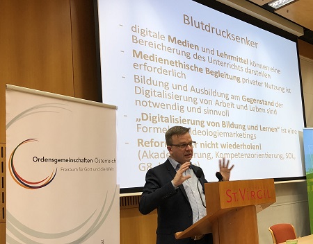 Den Schulen rät der Digital-Spezialist: „Es geht darum, einen weiten und breiten anthropologischen Rahmen für die Bildung zu schaffen und nicht auf Geräte fokussiert vorzugehen. Es geht darum, medienpädagogisch kritische Vor- und Nachbereitung der Nutzung von digitalen Medien zu machen. Wichtig ist zu durchschauen, dass alle Digitalisierung als Ziel angegeben wird und nicht als Mittel, als Weg einer ganzheitlichen Bildung. Der gläserne Schüler ist für Big Data das Ziel. Lernsoftware ist immer mit der Sammlung von möglichst vielen Daten verbunden. Optimierung und Steuerung von Verhalten ist das Ziel. Aber es gilt immer die Frage zu stellen: Wer definiert das Optimum?“ Was ist zu tun? „Bleiben sie Souverän in den Bildungsaktivitäten. Wichtig ist, die Mechanismen, Annahmen und Interessen der Digitalisierung zu durchschauen. Es steht ein Kulturwandel an, der aber in unserer Hand liegt. Er darf uns nicht genommen werden. Es braucht den Primat des pädagogischen Interesses weit vor den Interessen der Konzerne und Machtinteressen. Es braucht ein Festhalten am „anderen Wahrheitsparadigma“ in den Schulen. Die Aufkündigung des Wahrheitsgedankens selber ist ein „Verbrechen“. Aus christlicher Sicht ist die Wahrheit in der Beziehung zu Gott zu gewinnen. Diese Offenheit ist offen zu halten. Diese Alternative gilt es wach zu halten, lebendig zu gestalten.“