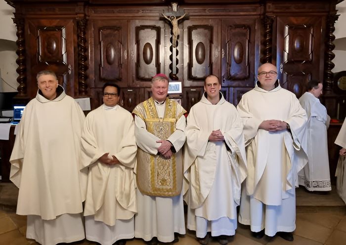 Am Ende der festlich gestalteten Weiheliturgie spendete P. Peter Maria den Gläubigen erstmals den priesterlichen Segen, ehe die Feier mit einer Agape im Klostergarten ausklang.