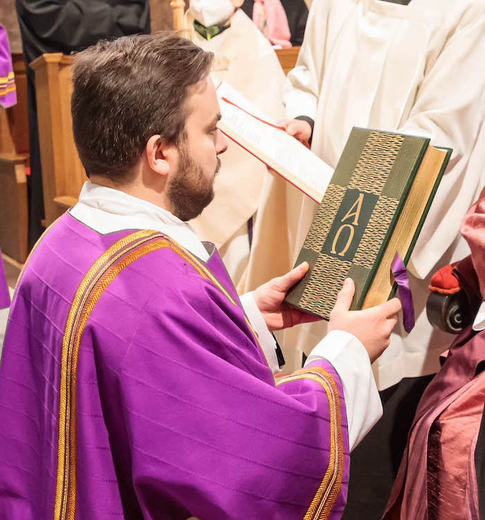 Diakon P. Anselm Demattio (34) stammt aus München und ist 2017 in die Klostergemeinschaft von Kremsmünster eingetreten. Vor seinem Eintritt hatte er das Physik- und Theologiestudium an der Universität Wien abgeschlossen. Im Herbst 2019 begann er das Lizenziatsstudium in Liturgie in Sant’Anselmo, der Hochschule der Benediktiner in Rom. Mit einer Arbeit zum Thema „Katholische Liturgie im Kontext der Reformation“ über den Codex 107 der Stiftsbibliothek aus dem Jahr 1580 konnte er im Februar 2022 dieses Studium abschließen. Danach setzte er seine Studien für das Doktorat in Sant’Anselmo mit einem Projekt zur Liturgie in Kremsmünster um 1600 fort. Seit 2020 ist er Redaktionsmitglied der Benediktinischen Zeitschrift „Erbe und Auftrag“. Am 18. August 2022 legte Frater Anselm Demattio seine Ewige Profess im Stift Kremsmünster ab. Am 17.12.2022 spendete Kardinal Kurt Koch, der Präsident des päpstlichen Rates für die Einheit der Christen, Frater Anselm Demattio die Diakonatsweihe. Nun blickt er freudig seiner Priesterweihe entgegen.
