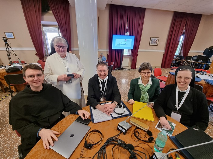 Br. Andreas Murk (Deutschland), Sr. Sara Böhmer (Niederlande), Erzabt Korbinian Birnbacher, Sr. Christine Rod und Sr. Maria Thoma Dickow (Deutschland) (v.l.n.r.) berieten in Rom über zu Ende gehende Ordensgemeinschaften und Hilfestellungen für diese. (c) ÖOK