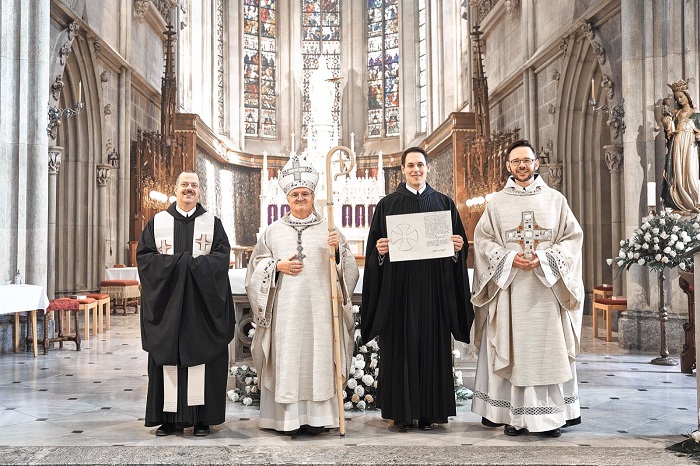 Frater Matthäus Konieczny (2.v.r.) legte am 21. März 2022 seine feierliche Profess in der Stiftskirche Admont ab. (c) Thomas Sattler