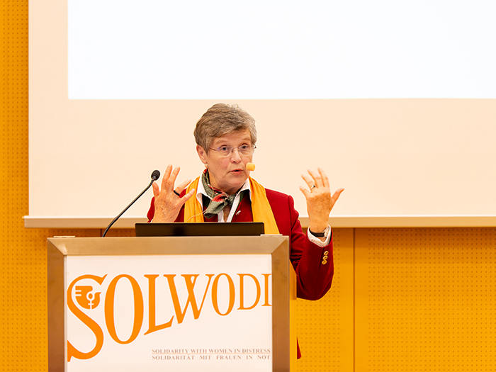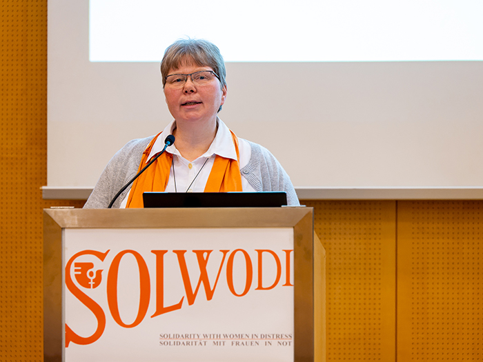 Den Reigen der Vorträge eröffnete Sr. Patricia Erber, Obfrau und Gründungsinitiatorin des Vereins SOLWODI Österreich. Sie brachte die Erfolgsgeschichte des Vereins in konkreten Zahlen auf den Punkt: So konnten im Zeitraum von zehn Jahren insgesamt 450 Frauen im Rahmen einer Kontaktaufnahme durch Mitarbeiterinnen von SOLWODI beraten werden. 93 Frauen und 51 Kinder fanden Platz und umfassende Betreuung in einer Schutzwohnung in Wien. Weitere 19 Frauen und elf Kinder in einer für kurze Zeit bestehenden Schutzeinrichtungen in Innsbruck. Nach dem Auszug aus der Schutzwohnung erhielten die Frauen weiterhin in einer eigenen dafür eingerichteten Beratungsstelle nachsorgende Betreuung. Zwei Drittel der in den SOLWODI-Schutzwohnungen betreuten Frauen waren Opfer von sexueller Ausbeutung oder Betroffene von Menschenhandel.