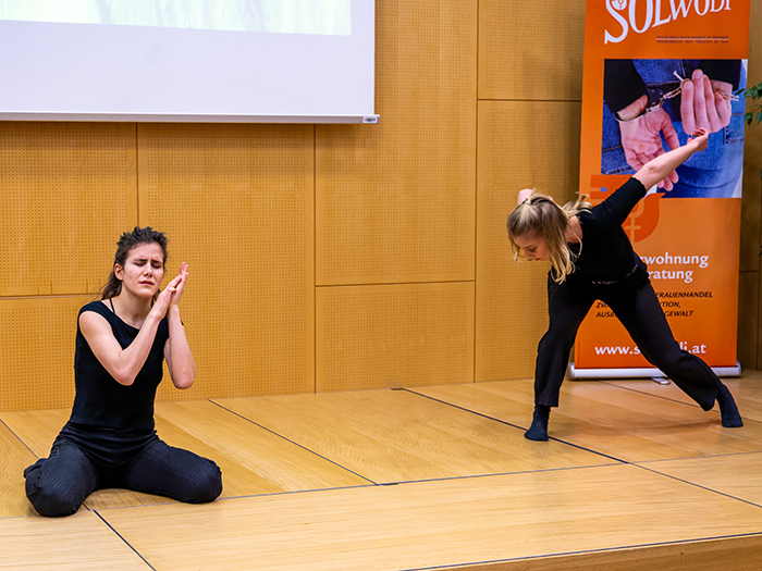 Liselotte Höfler und Nadine Schimetta zeigten tänzerisch, wie es ist, seine Würde zu verlieren. (c) Martin Eder