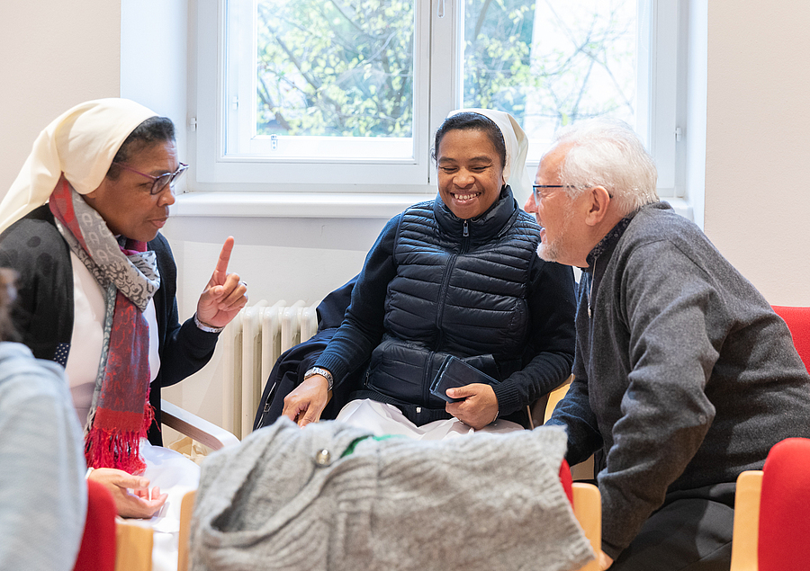 Ergänzt wurden die Ausführungen durch die Erfahrungsberichte von den Steyler Missionaren P. Inosens Reldi aus Indonesien und P. Delfor Nerenberg aus Argentinien, die in Dornbirn wirken, Sr. Silvia Bereczki, Provinzoberin der Kongregation der Helferinnen und ursprünglich aus Siebenbürgen sowie Sr. Colette Onyeocha und Sr. Caroline Ibeh von der Kongregation der Töchter Mariens, Mutter der Barmherzigkeit, die von Ost-Nigeria nach Österreich gekommen waren.