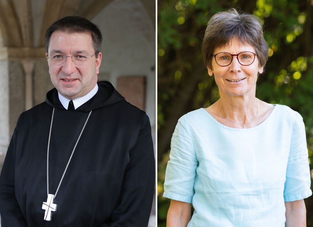 Erzabt Korbinian Birnbacher, Vorsitzender der Österreichischen Ordenskonferenz, und Sr. Christine Rod, Gerneralsekretärin der Österreichischen Ordenskonferenz, appelieren an die Politiker:innen der nächsten Regierungsverhandlungen sich an den christlichen Wertekompass zu orientieren. © ÖOK