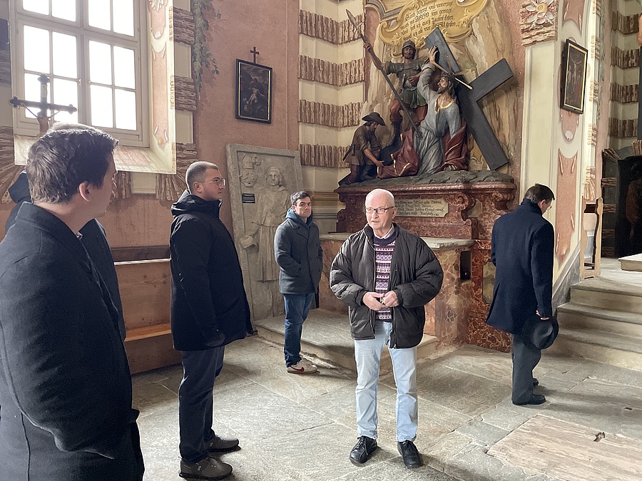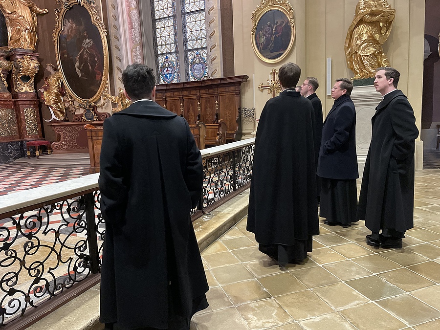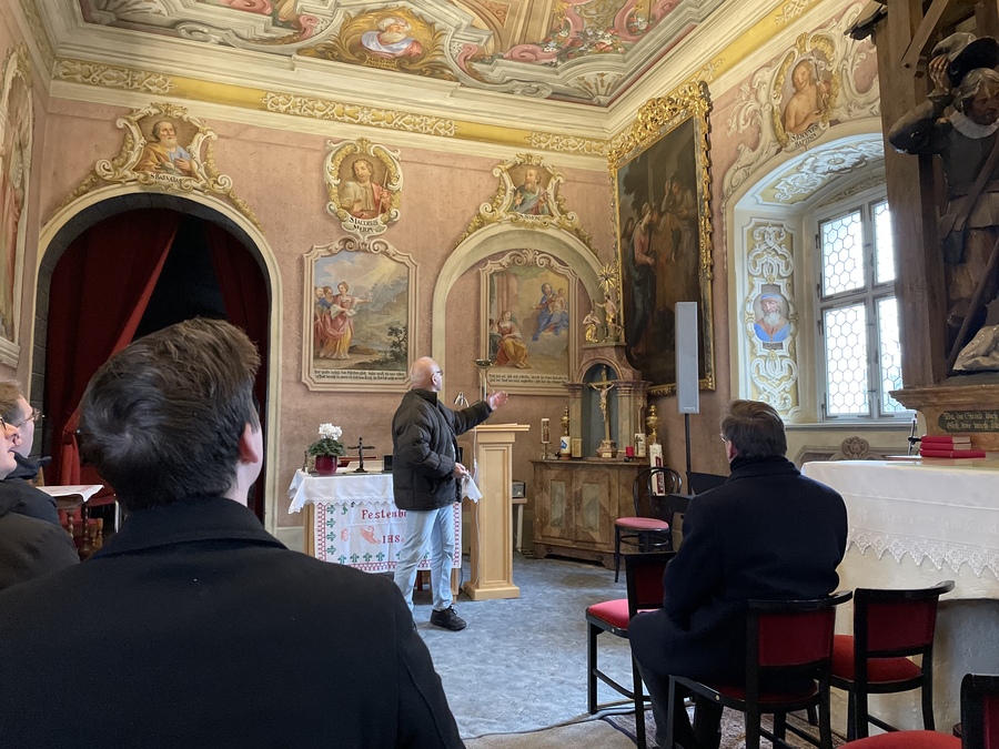Die Junioren der österreichischen Augustiner-Chorherren-Kongregation waren von 9. bis 12. Februar 2025 in Vorau zu Gast. Propst Bernhard Mayrhofer führte sie durch das Stift. (c) H. Matthias Gassner Can.Reg.