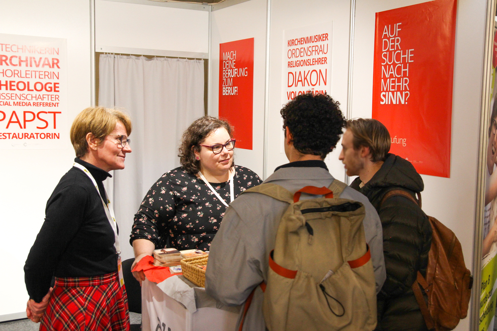 Neben Informationen zu konkreten Stellenangeboten bieten die Vertreter auch Orientierungsgespräche und individuelle Beratung an. Der Messestand lädt ein zu persönlichen Gesprächen über Glauben, Berufung und die vielfältigen Möglichkeiten, sich in der Kirche zu engagieren.