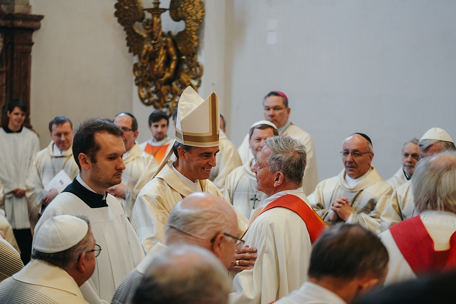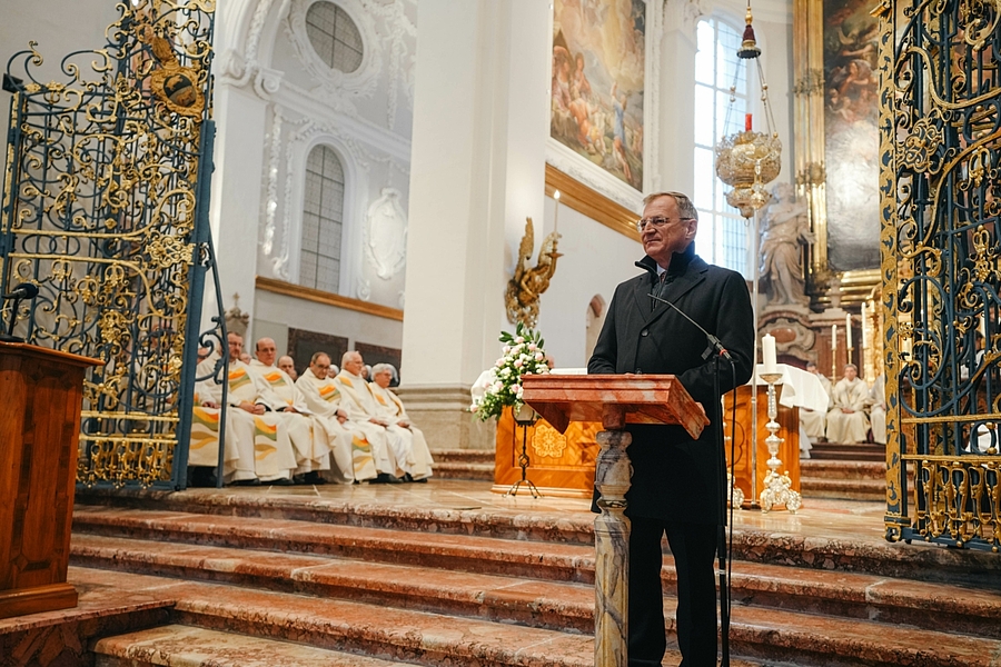 Am Ende des Gottesdienstes sprachen Benediktiner-Abtprimas Jeremias Schröder, Landeshauptmann Thomas Stelzer und der evangelische Superintendent Gerold Lehner ein Grußwort.