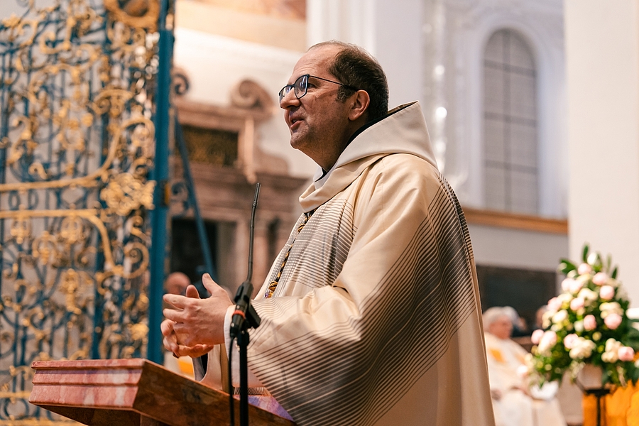 Bischof Manfred Scheuer ging in seiner Predigt auf die Ordensregel des Hl. Benedikt ein. (c) SchauMedia