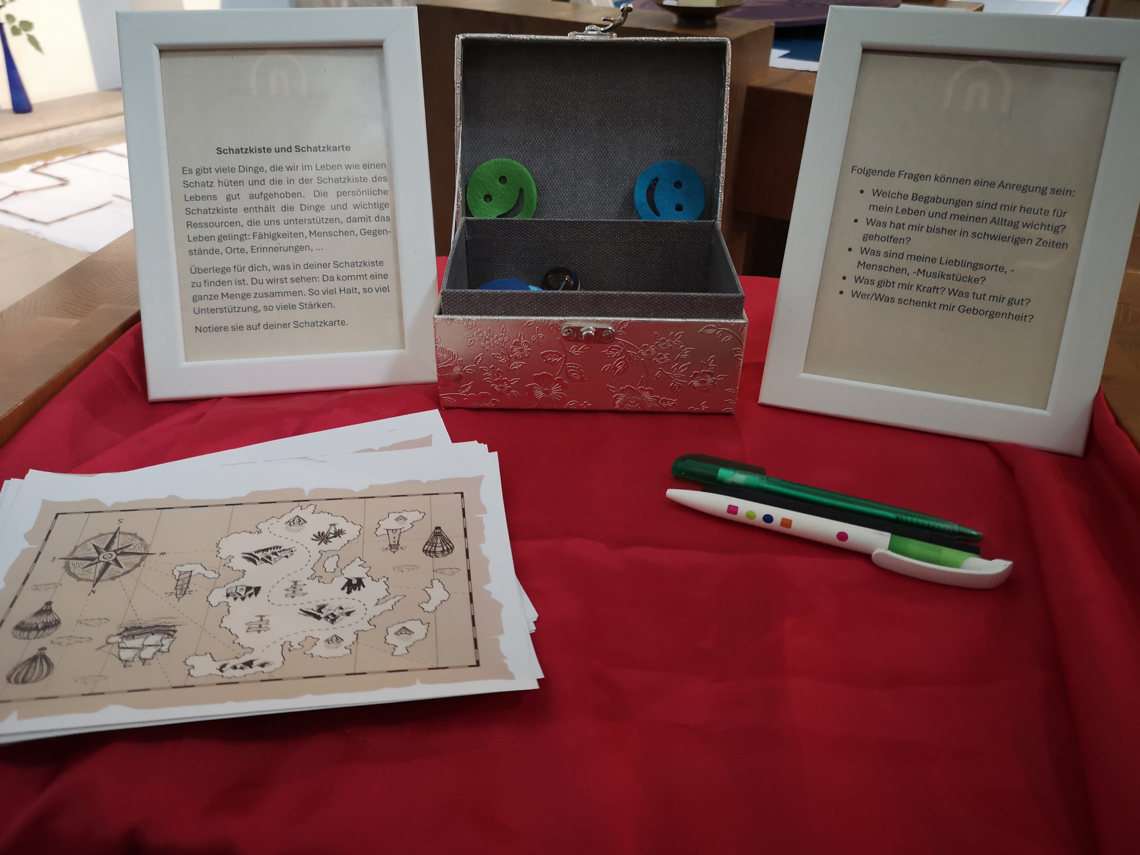 In der stimmungsvollen Atmosphäre der Romanischen Kapelle im Schottenstift (Freyung 6a, 1010 Wien) erwartet die Maturant:innen ein vielfältiges Angebot: Stationen laden ein zum Abladen von Sorgen, Durchatmen, Auftanken, zur Ermutigung und zur Stärkung. Wer möchte, kann in der gegenüberliegenden Gesprächsinsel auch das Angebot des vertraulichen Gesprächs nutzen.