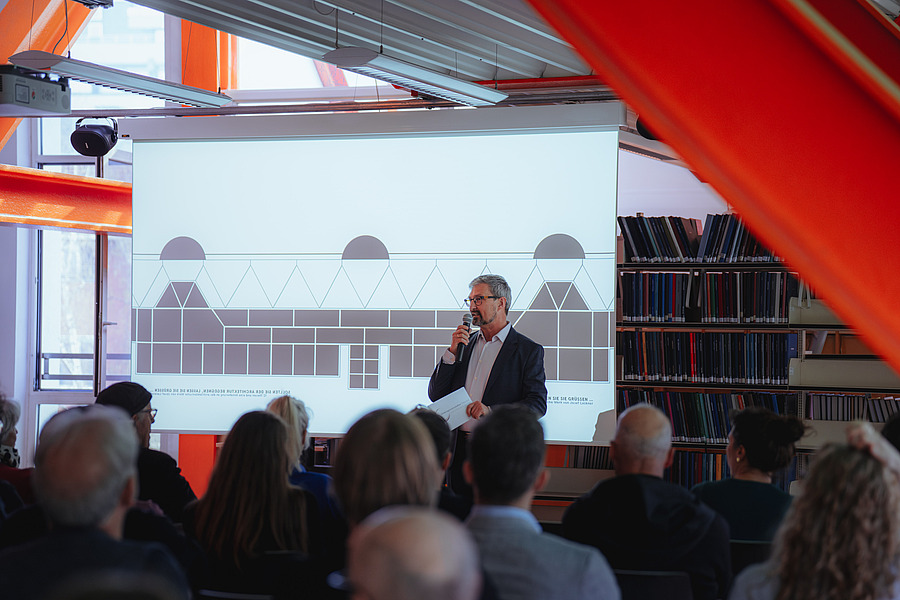 „Das Projekt verfolgt das Ziel, eine respektvolle Balance zwischen der notwendigen Sanierung und der Bewahrung des architektonischen Erbes von Josef Lackner zu finden – und zugleich die zukünftige, zeitgemäße Nutzung der Gebäude zu ermöglichen“, betonte Anton Süss, Geschäftsführer des Instituts Österreichischer Orden, in seiner Begrüßungsrede. (c) Fabian Weirather