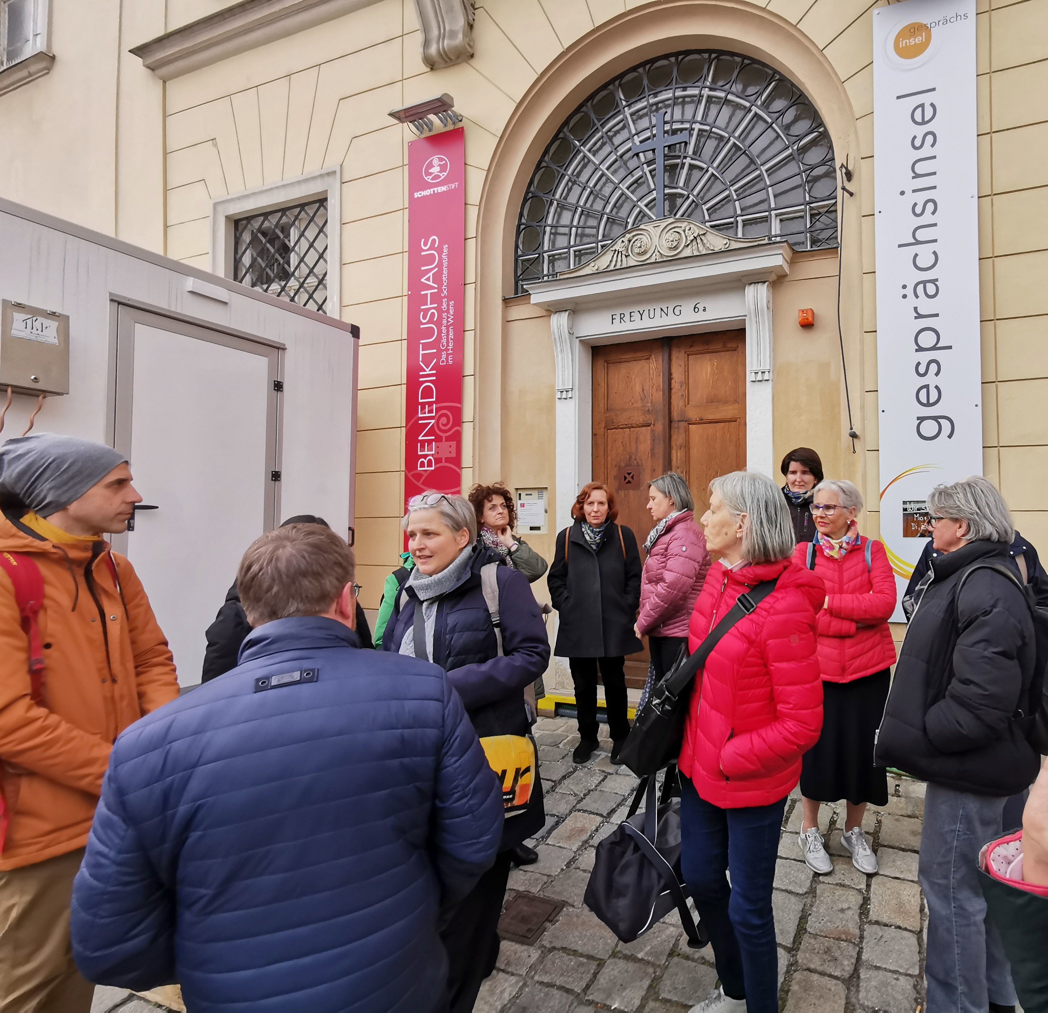 Am Programm standen auch Besichtigungen der Einrichtungen in der Wiener Innenstadt, darunter die Gesprächsinsel und das neueröffnete Mamas Café der St. Elisabeth Stiftung. Der zweite Tag stand, nach einem Morgenlob im Raum der Stille am Hauptbahnhof, ganz im Zeichen fachlicher Vertiefung, Stärkung und persönlicher Erkenntnisse: P. Georg Dinauer, Ordensmann der Oblaten des Hl. Franz von Sales und Psychotherapeut, gab in seinem Impuls zum Thema „Eigenwilligkeit und Selbstbestimmtheit halten mich gesund“ wertvolle Denkanstöße und brachte praktische Übungen für die haupt- und ehrenamtlich wirkenden Mitarbeiter:innen mit. So widmeten sie sich zum Beispiel in Kleingruppen mehreren Fragen nach dem Bemühen um die eigene Würde und Eigensinn oder ließen sich auf ein achtsam geleitetes Bibliodrama ein. Die zentrale Botschaft lautete: Wer seelsorglich für andere da sein will, braucht auch einen bewussten und achtsamen Umgang mit sich selbst.