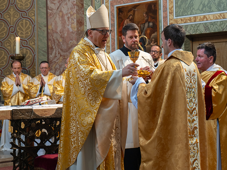 Die Priesterweihe des gebürtigen Deutschen fand am „Weißen Sonntag“, auch bekannt als „Sonntag der Barmherzigkeit“, statt. Bischof Glettler verband in seiner Predigt den Anlass mit dem Gedenken an die Gründung der Zweiten Republik Österreichs vor genau 80 Jahren: Wie damals Mut und Zuversicht entscheidend gewesen seien, sei auch die priesterliche Berufung ein Dienst an der Hoffnung und am neuen Leben.