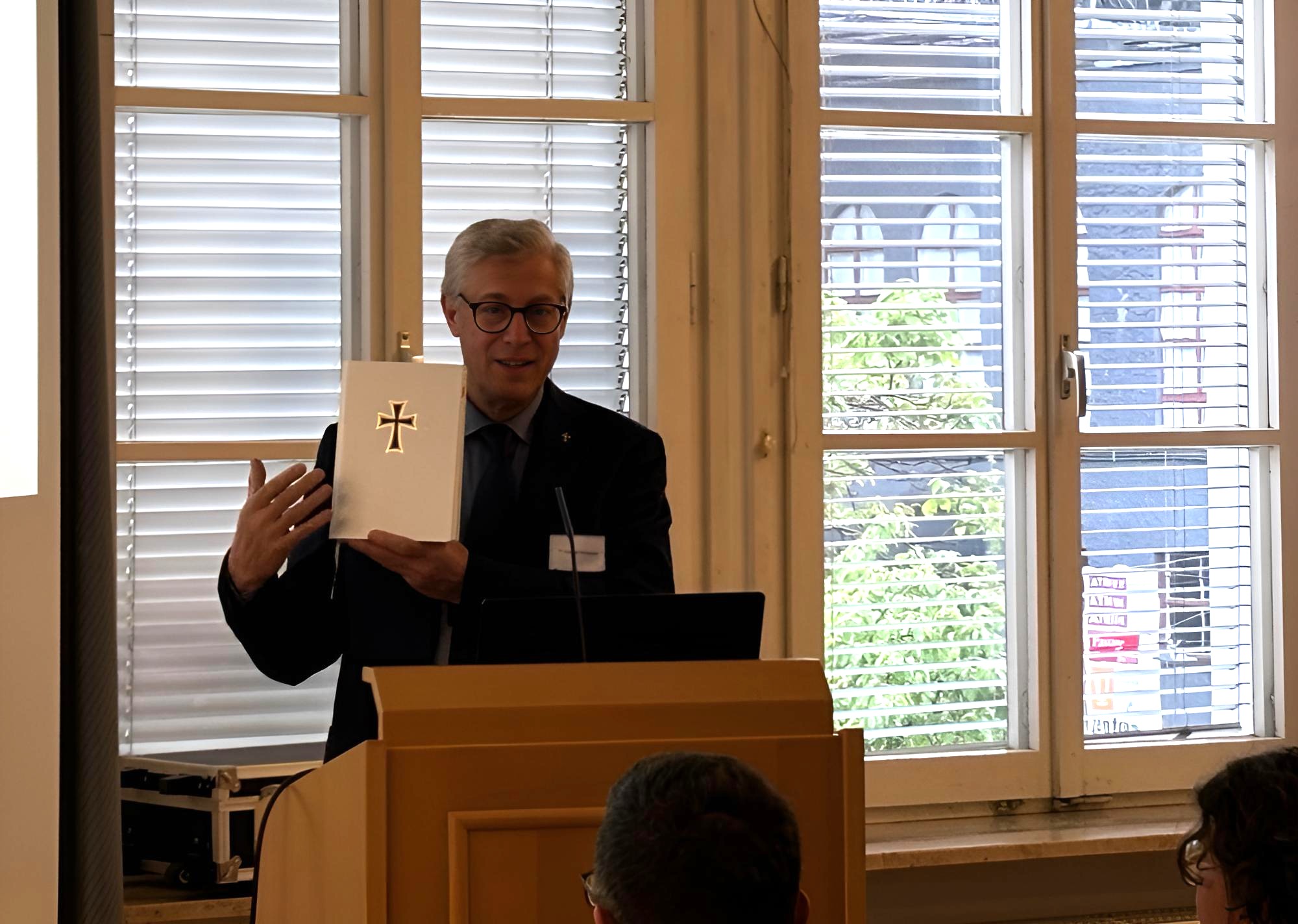 Einen anderen Zugang wählte P. Ewald Volgger OT (Professor für Liturgiewissenschaft und Sakramententheologie an der KU Linz), der die liturgische Erinnerungskultur des Deutschen Ordens vorstellte. Angestoßen durch die Auseinandersetzung mit Leid, Verfolgung und Auflösung während totalitärer Systeme entstand das „Weiße Buch“: Nekrologium. Martyrologium des Deutschen Ordens. Das Nekrologium einer Ordensgemeinschaft ist ein täglich verwendetes Instrument der Ordensspiritualität im Gedenken an die Toten. Das Besondere an dem Nekrologium des Deutschen Ordens ist, dass es Kurzbiografien und Martyrologium von Ordensmitgliedern enthält, die unter totalitären Diktatoren litten oder ermordet wurden. Eingebettet in das tägliche Totengedenken soll dieses Projekt nicht nur dokumentieren, sondern auch spirituelle Tiefe schaffen: „Wir gedenken nicht nur der Toten, sondern würdigen ihr Leben als Glaubenszeugnis.“