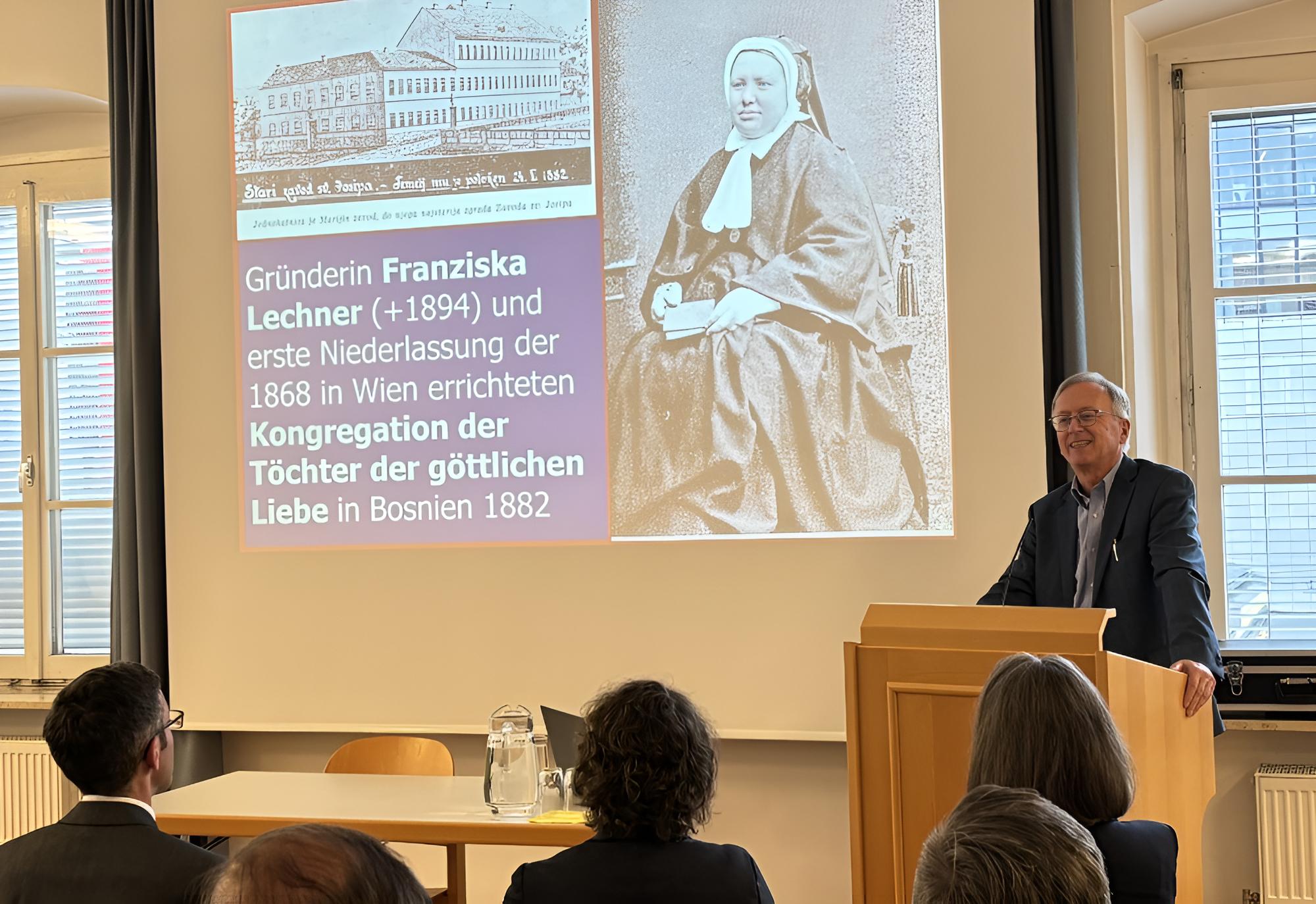 P. Oliver Ruggenthaler (Guardian des Wiener Franziskanerklosters): Der Beitrag zeigte die Ambivalenz innerhalb der Franziskaner zur NS-Zeit – von Opfern und Widerstandskämpfern bis zu Mitläufern und Kollaborateuren – mit Fokus auf Österreich und Südtirol.