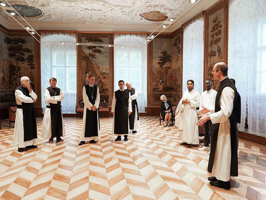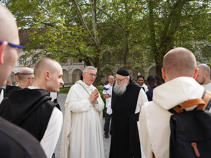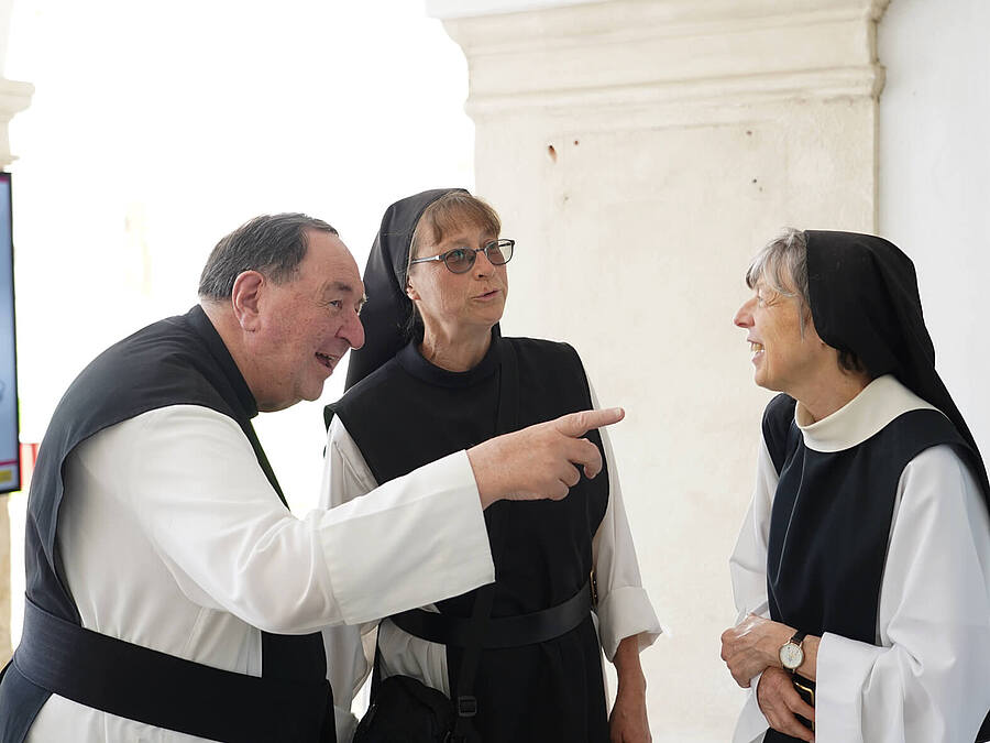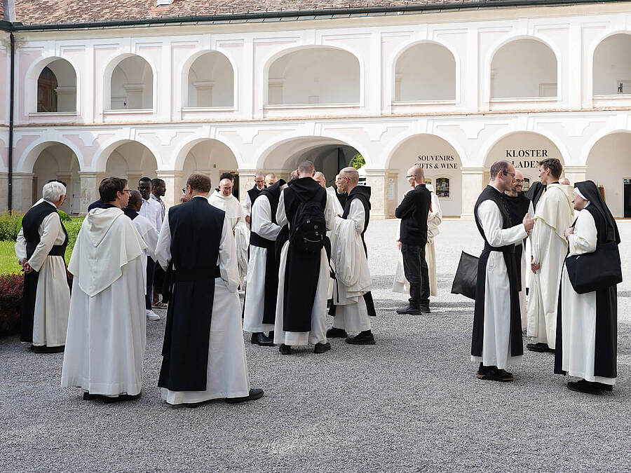 Mehr als 80 Zisterzienserinnen und Zisterzienser kamen zusammen, um einen gemeinsamen Tag zu verbringen. Auf dem Programm standen eine Festmesse mit dem Abt des Stifts Heiligenkreuz, Maximilian Heim, Spezialführungen, Gebet, gemeinsames Essen sowie Vernetzung und Austausch.