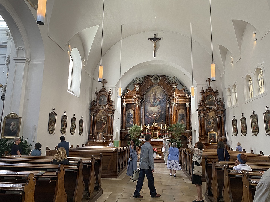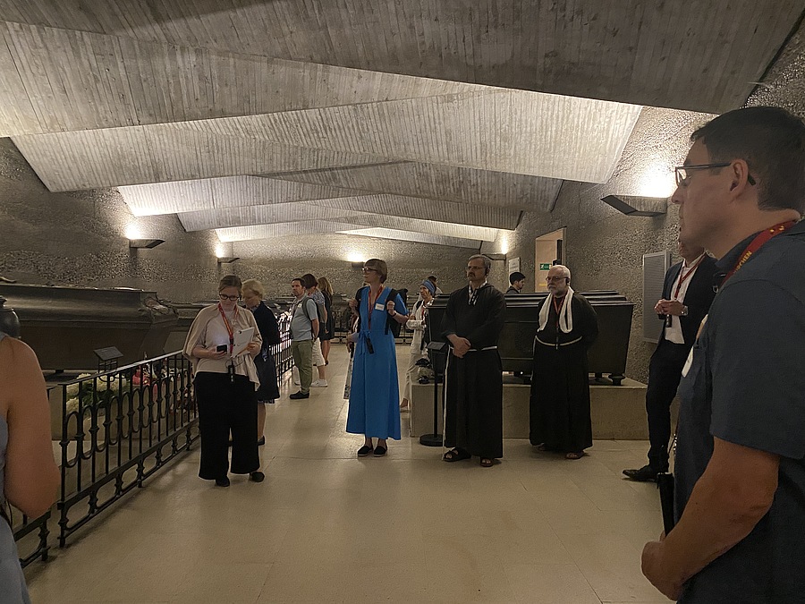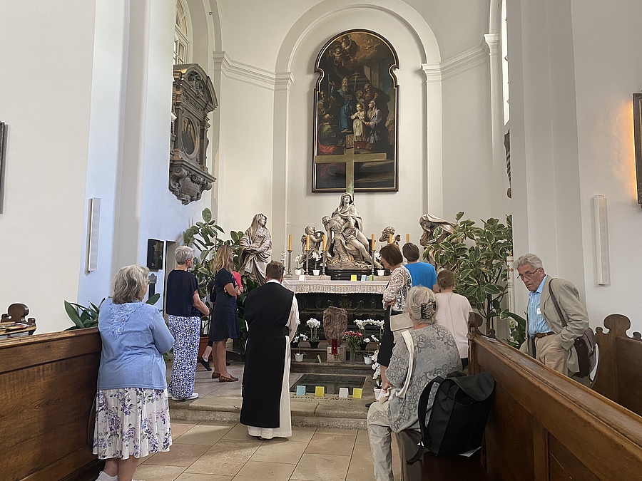 Die Kirche mit ihren bescheidenen Materialien gleicht hingegen dem architektonischen Bauschema anderer Kapuzinerkirchen, wenngleich sie größer ist. Die Ausnahme bilden allerdings die prunkvolle Kaiserkapelle und die Pietàkapelle. Bereits zuvor zeigte der Delegat der Kapuzinerdelegation Wien, Br. Marek Król, den Teilnehmenden den normalerweise nicht öffentlich zugänglichen Brüderchor hinter der Kirche. „Ich persönlich empfinde das Leben im Kloster als besonderen Ort. Man nimmt das Getriebe in der Stadt nicht wahr, wenn man nicht hinausgeht“, fasste Br. Wolfgang Schauersberger zusammen.