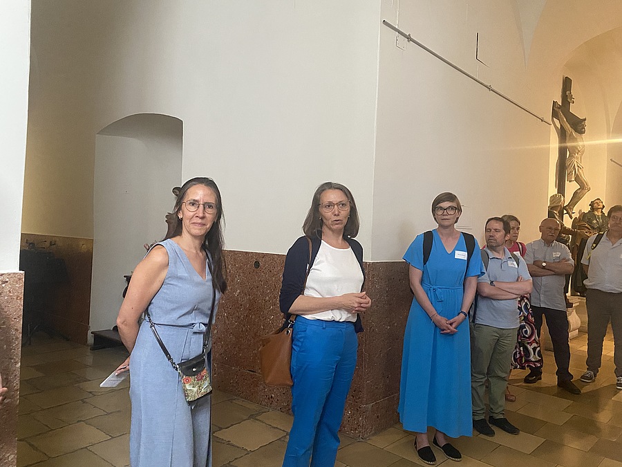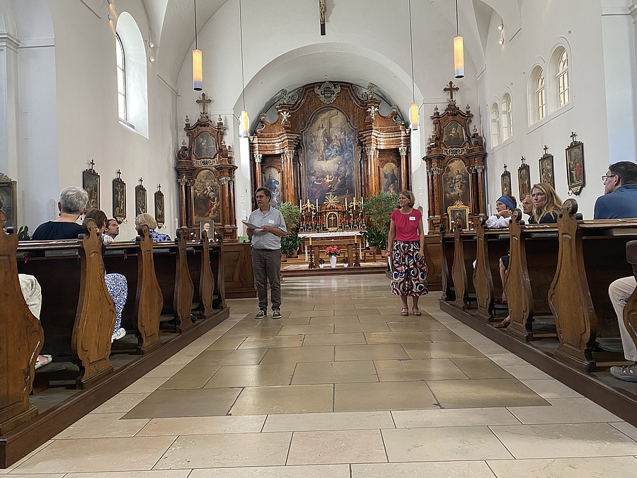 Elisabeth Glatzenberger und Albert Roth aus dem Leitungsteam der ARGE Kulturvermittlung leiteten die Teilnehmer:innen bei der Erkundung der Kapuzinerkirche an. (c) ÖOK/tb