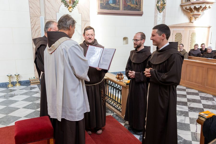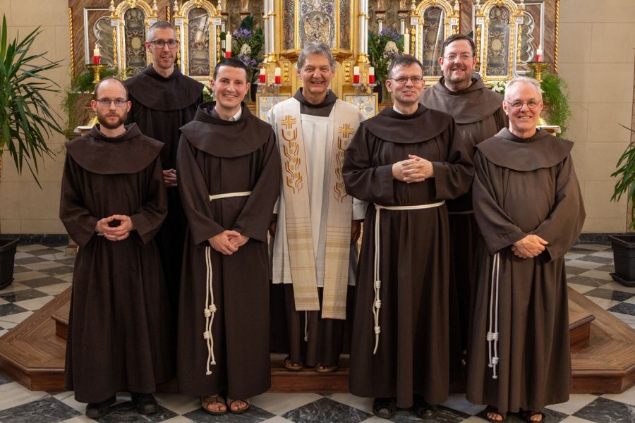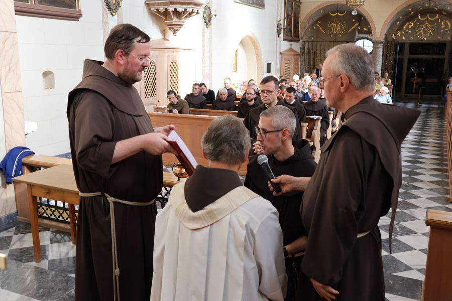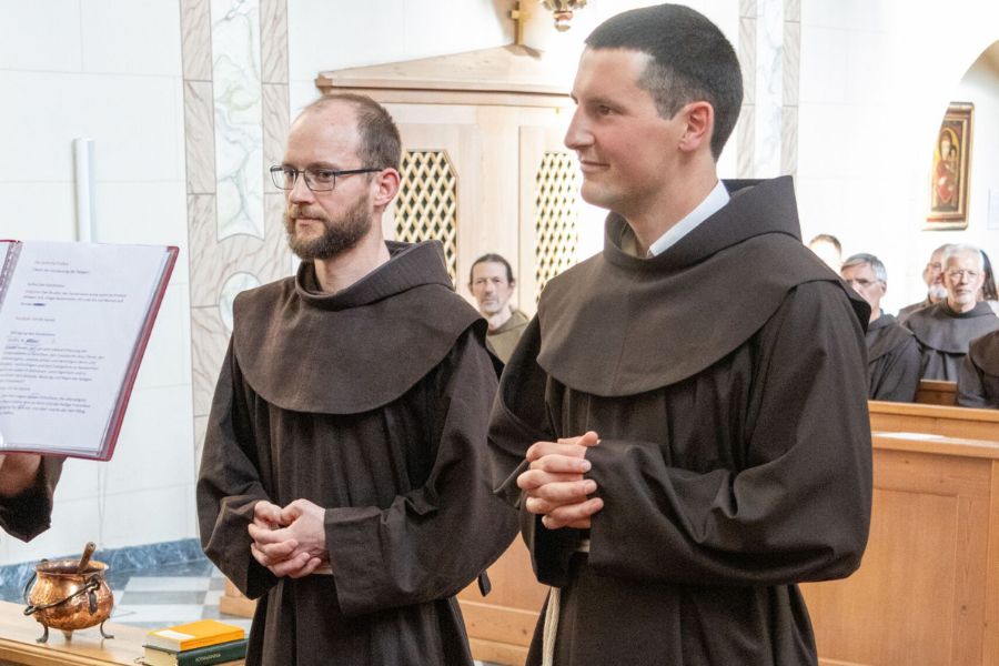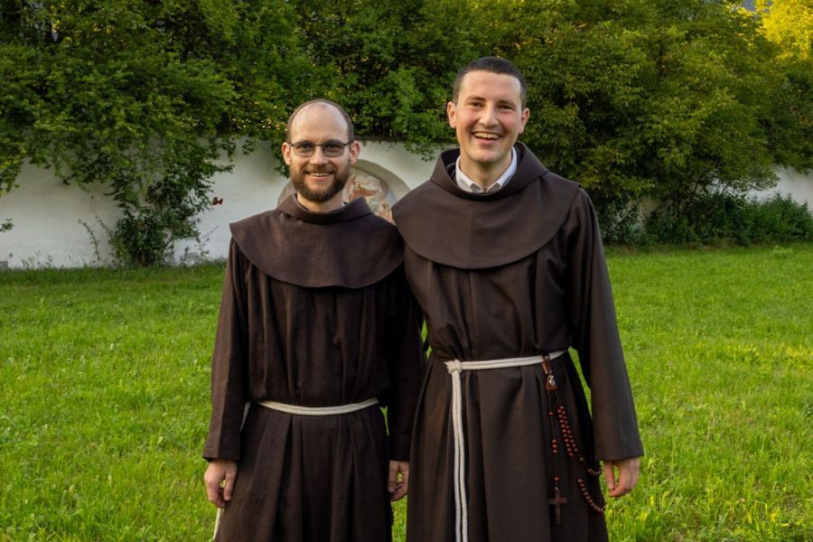 Nach ihrer Rückkehr aus dem internationalen Noviziat im irischen Killarney haben Br. Jan-Markus Pinjuh ofm (49) und Br. Florian Schlittler ofm (44) in der Franziskanerkirche in Telfs die einfache Profess abgelegt. Ihr Ordensversprechen gilt für ein Jahr. Der aus Deutschland stammende Br. Jan-Markus ist Mitglied der Provinz Österreich und Südtirol und zieht nun nach Bozen, wo er u. a. am ordenseigenen Gymnasium unterrichten wird. Br. Florian gehört der Kustodie in der Schweiz an und wird zunächst in der Gemeinschaft Zürich mitarbeiten.