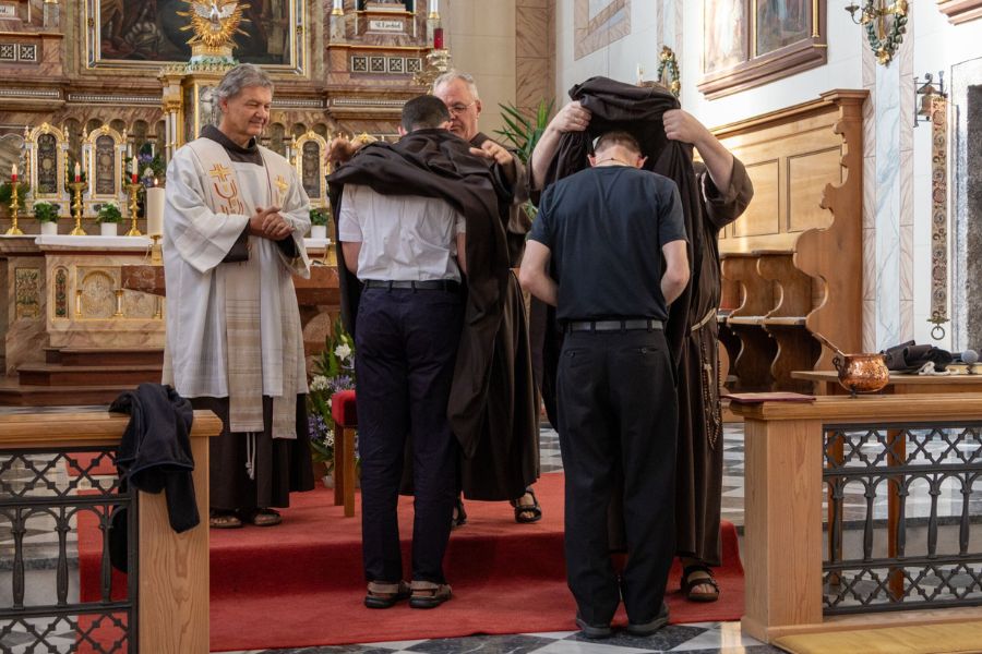 Außerdem kleidete der Provinzialminister zwei Novizen ein und übergab ihnen Ordensgewand und Regel des Ordens. Br. Franz Aukenthaler ofm ist am 31. Dezember 1998 geboren und stammt aus Südtirol. Br. Samuel Scherrer ofm ist am 23. Februar 1990 in der Schweiz geboren. Beide verbringen ihr Noviziatsjahr ebenfalls in Irland.