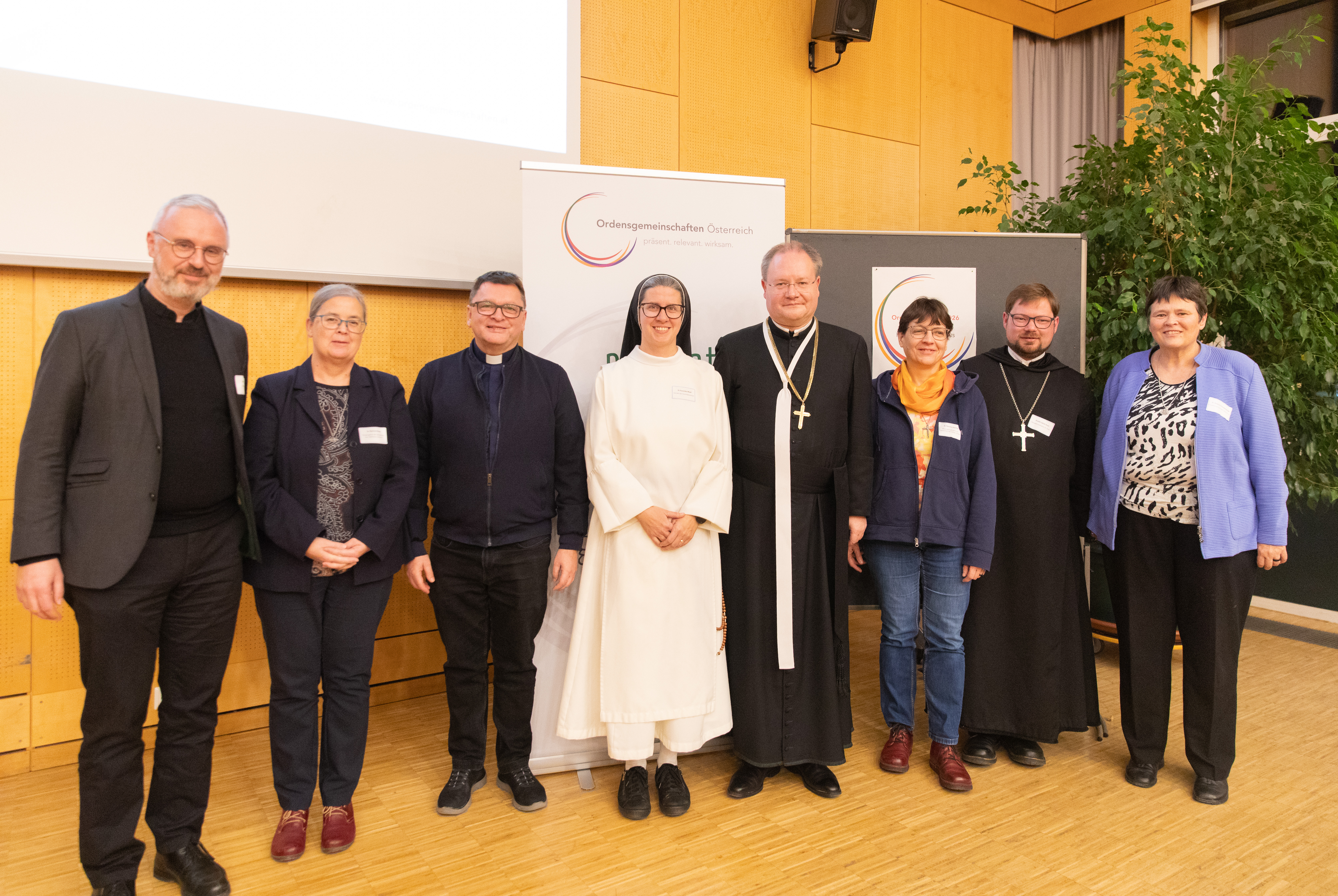 Neuer Vorstand (inkl. Ersatzmitgliedern) v.l.n.r.: P. Martin Leitgöb, Sr. Patricia Erber, P. Siegfried M. Kettner, Priorin Sr. Franziska Madl, Propst Anton Höslinger, Sr. Hemma Jaschke, P. Jakob Auer, Sr. Susanne Krendelsberger (c) ÖOK/emw | Download