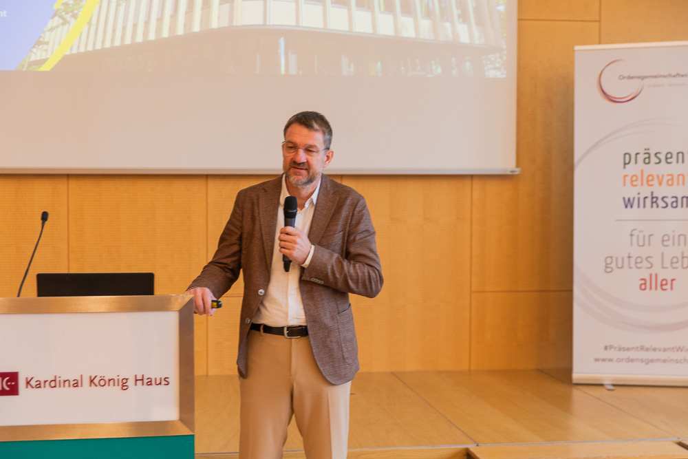 Oliver Szmej, Direktor Barmherzige Brüder KH Graz, stellt das Projekt „SVS Gesundheitszentrum Graz“ vor - eine gelungene Ordenskooperation zwischen Barmherzige Brüder und Vinzenz Gruppe. © ÖOK/emw