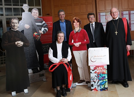 Die Salesianer Don Boscos gaben beim Medienempfang Einblick in ihre Spiritualität und Arbeit. Nach einem Spielfilm-Ausschnitt über die Begegnung eines Jugendlichen mit Don Bosco berichtete P. Provinzial Petrus Obermüller über das Charisma des Heiligen und den Kernauftrag der Ordensgemeinschaft: „Damit das Leben junger Menschen gelingt.“ Sr. Maria Maxwald, Provinzbeauftragte für Öffentlichkeitsarbeit der Don Bosco Schwestern, stellte die Arbeitsschwerpunkte der Schwestern in Österreich vor. P. Rudolf Osanger und Jugendliche aus der Salesianischen Familie präsentierten das von Jugendlichen konzipierte neue Gebetbuch „Pray with you(th). Mit Jugendlichen im Geist Don Boscos beten“. Eine originelle Ausstellung im Foyer des Don Bosco Hauses informiert über den 200-jährigen Jugend-Heiligen und den Orden.