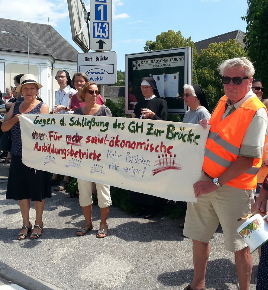 Motto ist: "Mit Töpfen und Kochlöffeln gegen das Zusperren des Gasthauses Zur Brücke! - Wir brauchen mehr Brücken,... nicht weniger! Mehr Solidarität und sozial-ökonomische Betriebe. Bring einen Topf mit Kochlöffel mit!"