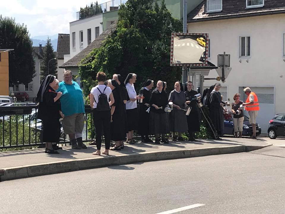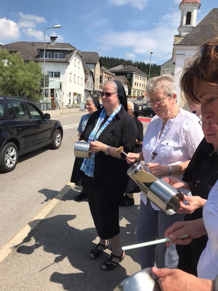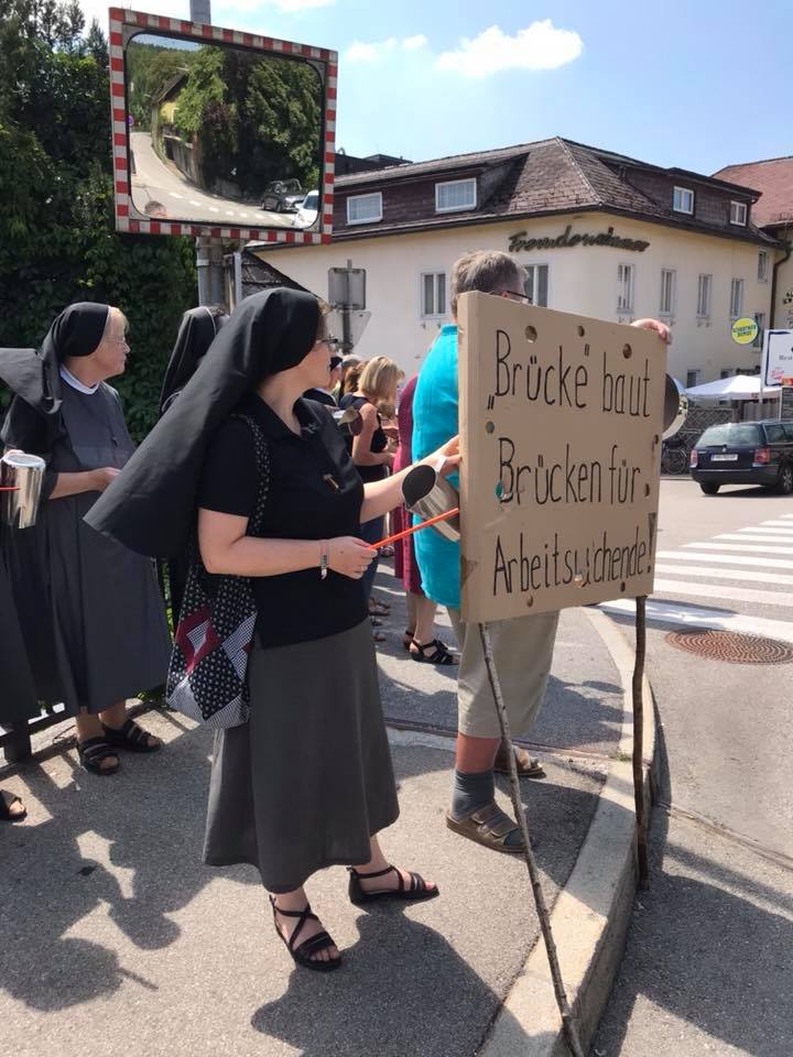 Auch die Franziskanerinnen von Vöcklabruck beteiligten sich geschlossen an dem Flashmob und lenkten die Aufmerksamkeit von Passanten und Autofahrern auf das Anliegen. Das Teilen von Bildern und der Geschichte im Social Web via Facebook erzeugt ebenfalls ein Echo.